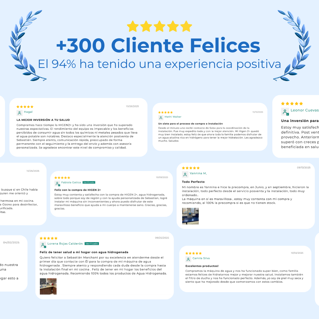 Gracias a su proceso de electrólisis avanzada, la Higen 2+ genera una concentración de entre 800 y 1.200 ppb de hidrógeno molecular, visible en las finas burbujas que se forman al dispensar el agua.